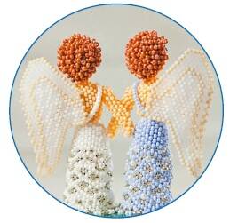 The finished work created using the Ndebele technique resembles a braid or an ear of corn. It is used for creating decorative elements in figurines, such as ears of corn and arrows. The technique originates from the Ndebele tribe of South Africa, whose women have used it for over 200 years. The bead arrangement resembles a “Christmas tree” pattern in knitted fabric.