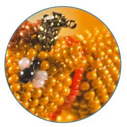 Brick weaving can be compared to a brick wall, as the beads are arranged in an offset pattern. For the most accurate result, it is recommended to use even, calibrated TOHO beads. In our posts, this technique is mainly used for creating wings and fins.